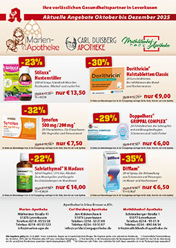 Alle Angebote gültig bis 31.12.2025. Irrtum vorbehalten. Abgabe nur in haushaltsüblichen Mengen. Die Angebote gelten nicht während des Notdienstes.